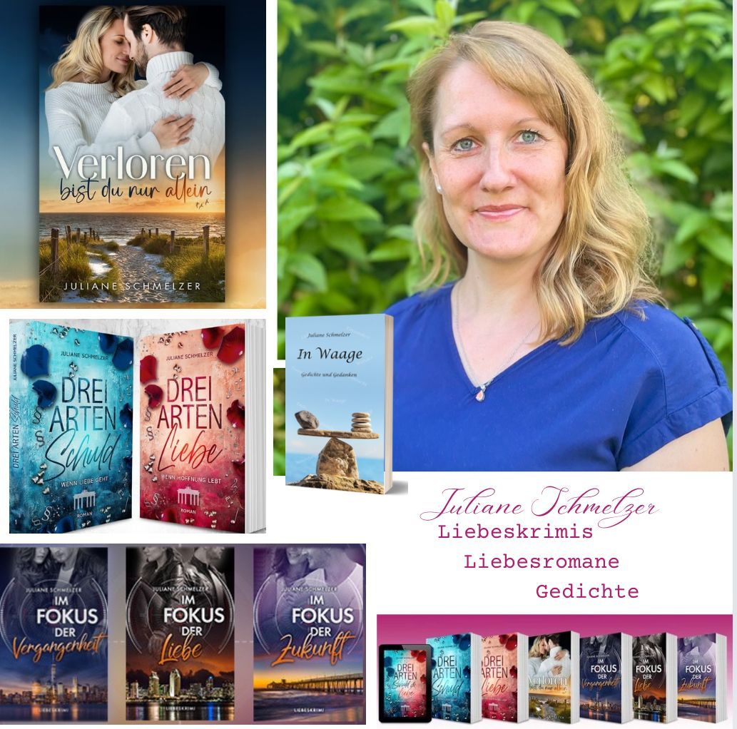 Mein Name ist Juliane, ich wohne in der Nähe von Berlin und schreibe Liebeskrimis, Liebesromane und Gedichte. Mehr zu mir erfährst du hier.